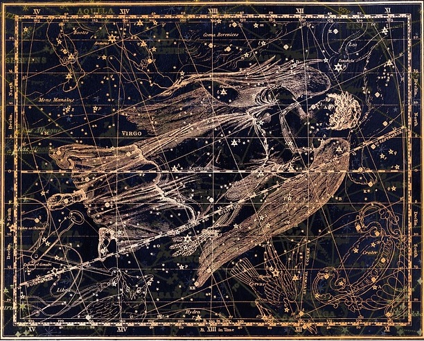 Harris egy másik nyomot is hozzátesz a “caput 58” rejtélyéhez, mégpedig azt, hogy a felirata a Halakkal szemben álló jegy, a Szűz szimbólumát is viselte. Egy adott korszakban az ellentétes jegyet gyakran eltorzítják vagy becsmérlik, és az uralkodó archetípusok vagy témák rejtett árnyékaként szolgál. A Szűz az egyetlen olyan állatövi jegy, amelyet egyetlen női alak képvisel, aki egy kukoricafüvet vagy búzakévét tart a kezében, és ezt a jegyet az ókori Mezopotámia óta a Föld Istennőjével hozzák összefüggésbe. A Szűz jelképe állítólag a beleket ábrázolja – a testnek azt a részét, amelyet hagyományosan a Szűz ural -, de a petefészkeket, a hüvelyt és a méhet is, amelyek az életet teremtő női erővel vannak kapcsolatban.