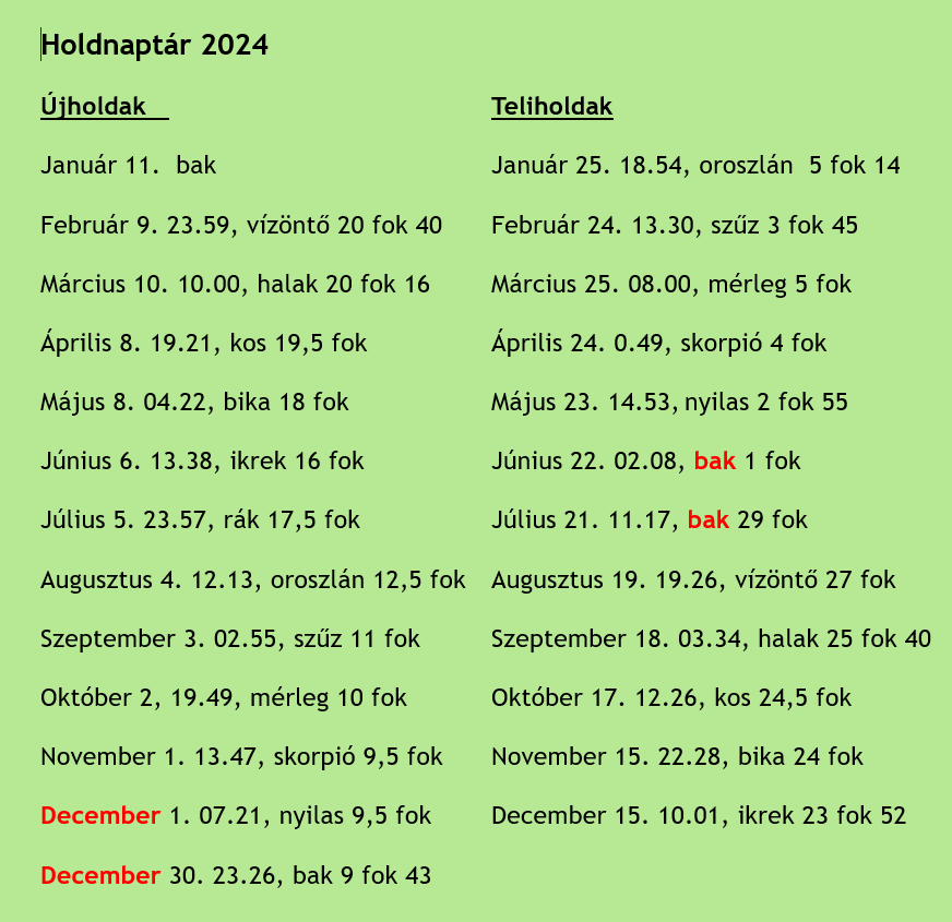 – 13 újhold és 12 telihold követi egymást és ahogyan bak újholddal indult ez az év, ugyanúgy bak újholddal fogjuk zárni